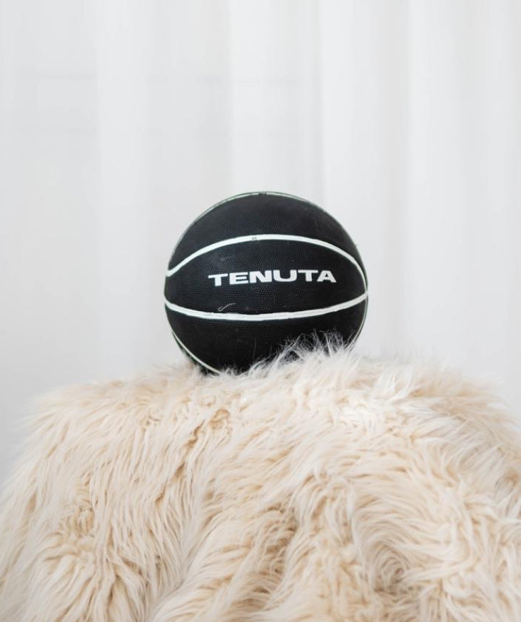 Black and white basketball with our signature logo on comes with stand so can be used as ornament or taken to the court
