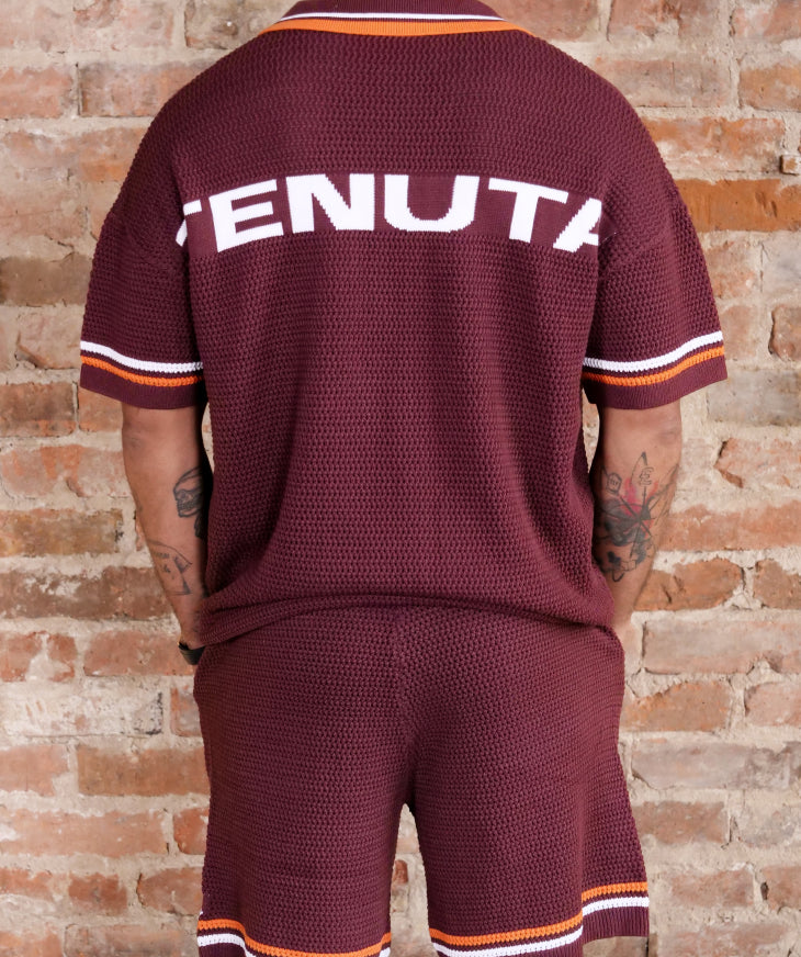 Premium heavy weight shirt & short set brown with orange and white stripes and orange logo